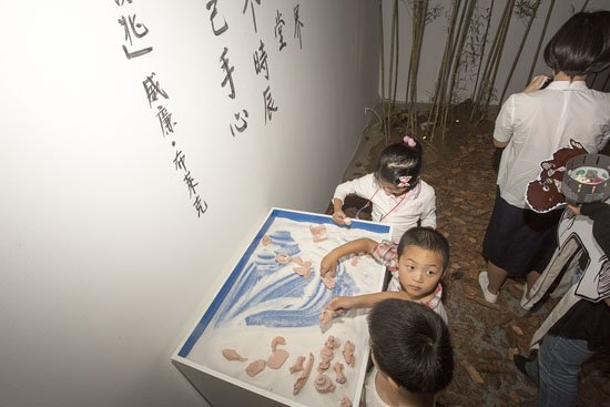 展览现场 小朋友在玩儿于伯公的“内心之帐”沙盘游戏
