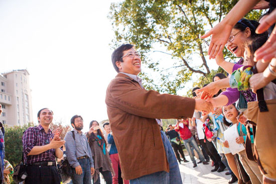 易英展前与来自全国各地的学生、友人握手