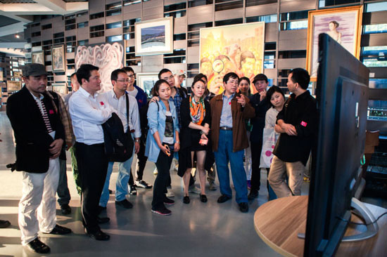随后,易英教授带领众学生参观画展,并亲自对每位同学的画进行点评、交流。