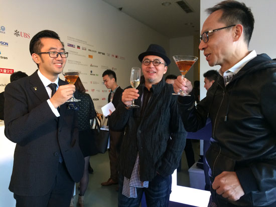 今日美术馆馆长高鹏、艺术家瞿广慈与嘉宾一起举杯庆贺