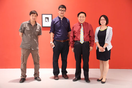 开幕现场(左起):摄影人付羽、策展人蔡萌、收藏家靳宏伟、画廊总监李燕玲