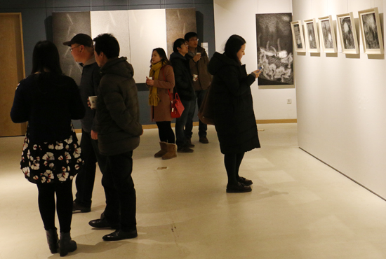 开幕现场 观众驻足艺术家和永生水墨作品面前赏析