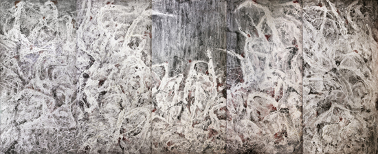 展览现场展出冯放《鹤韵》作品(600×244×10cm 综合材料)