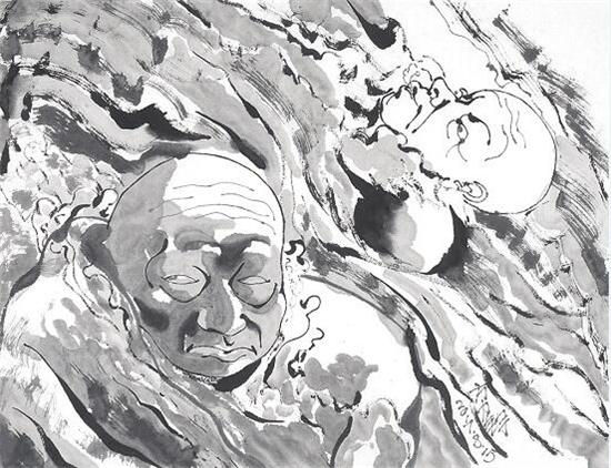 方力钧 2017.8.15 35x45.5cm 纸本水墨 2017