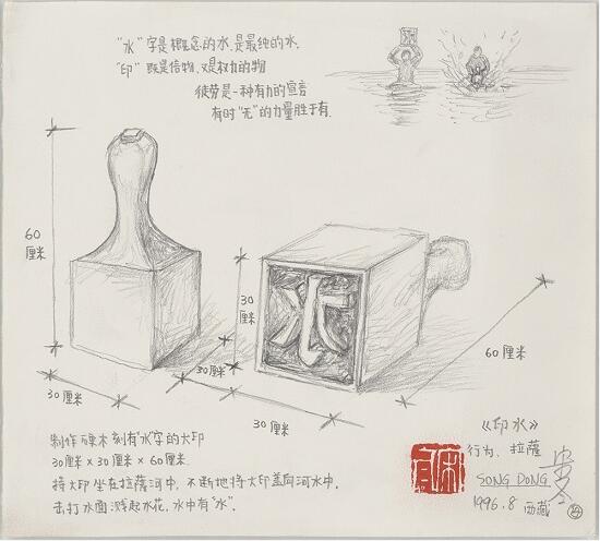 宋冬 《印水》(行为)手稿 26.5x29cm 纸上铅笔 1996