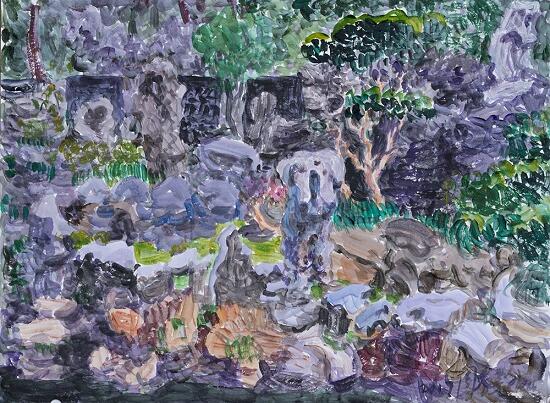 周春芽 《豫园小景》手稿 33x44cm 纸上丙烯 2017