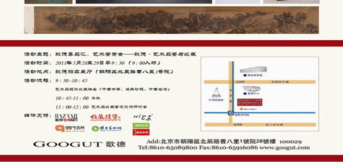 为了让更多的艺术品爱好者在繁荣而又复杂的艺术品市场中提高鉴赏力,增强鉴别能力,5月28、29日,北京歌德拍卖有限公司联手中国民生银行、渣打银行等金融机构,共同举办了首届“歌德尊品汇,艺术鉴赏会——歌德•艺术品鉴与收藏”活动。本次歌德艺术品鉴会分为两个部分,分别是“艺术品投资收藏讲座”、“艺术品收藏鉴定交流研讨会”。 届时将为来宾讲解中国文化的特殊性、主流艺术品的历史投资回报、艺术品投资的深度及价值,以及探讨在艺术品投资中遇到的问题及经验。