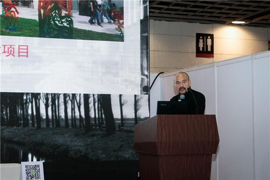 在第一场乡村再造与文创产业论坛中,一直热衷于公共艺术创作的著名当代艺术家任戎,首先从自己公共艺术创作的经历出发,与在座嘉宾及观众分享了自己的艺术实践和公共艺术思考。从1996年南京艺术学院到德国杜塞尔多夫国立美术学院,再到ART PARK公共艺术展,每一次的艺术实践,任戎都能够完美的将西方艺术形式与东方美学传统、艺术特质与当地的特色结合在一起,使得这些公共艺术作品既具有形式美,有能与周围环境和谐相处,以此说明,公共艺术是可以做到艺术与公众的和谐共存。