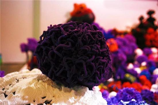 罗旦《THANKS》:⼈生可以分为很多阶段,一个阶段的结束也是另⼀个阶段的开始,于我⽽言,研究⽣毕业也是我连续的22年的学⽣生涯的结束。用这样一件⼤体量作品向⾃己的学⽣生涯告别,向帮助过我的老师和朋友,致谢!
