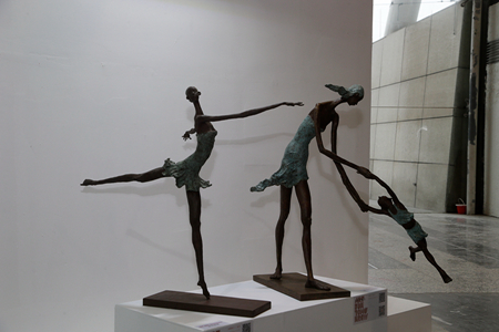 崔宇舞蹈系列,有没有觉得眼熟?它们中的一个曾出现在冯小刚导演的《私人订制》中!崔宇对事物有著敏鋭的洞察力,对奇特造型的大胆尝试与多种复杂形体的组合的能力,远远超出了我的视野。他丰富的想像力与熟练写实技法的结合,成就了他现代雕塑作品的风格,使人耳目一新而又玩味不止。那些修长的人物造型虽有些许贾科梅蒂的影子,但更具青春活力与趣味性。崔宇能在继承传统技艺中寻求新的造型语言,大胆突破,没有忽视艺术创作中的"技艺性"与否定作品的审美取向,准确地掌握并传达了他对现代艺术的真挚情感,实属难能可贵!