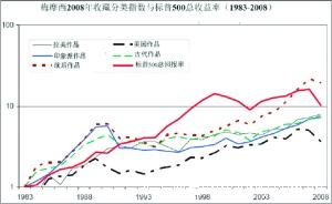 报告指出,2008年“梅·摩西艺术品指数”表现下降主要是受美国艺术以及战后和当代艺术两大门类价格下降的影响,同时又被古代艺术以及印象派和现代艺术两个门类的表现所抵消。前两类作品价格分别下降了26%和11%,而后两类作品分别升高了11%和4%。