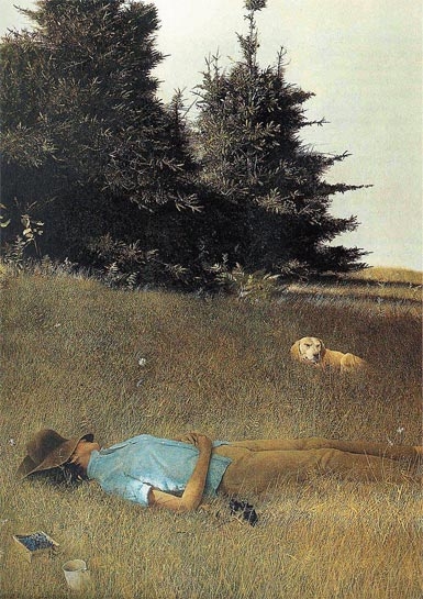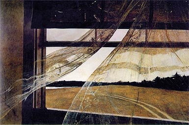 安德鲁·怀斯抛弃了抽象表现主义,开创了富有争议的现实主义题材,其作品基调阴冷,总是弥漫着淡淡的忧伤,反映了“20世纪人与人之间的疏远和孤寂感”。怀斯的生活如同他画里的情境一样,终其一生以他先后生活过的宾州恰兹佛德镇和缅因州库辛镇的风光与人物为题材。他画身患残疾的邻人,画姐姐的保姆,画故乡山后冰雪消融的小溪,画孤寂的海滩,他主张“从生活最平凡的琐事中,追求最大的启发与快乐”,也因此被誉为“怀乡写实主义”绘画大师。