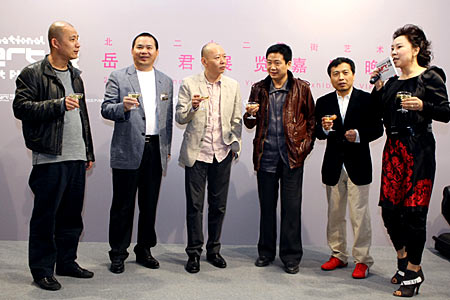 3月18日,包括方力钧、岳敏君、刘小东、徐冰等15位当代艺术大家的作品在东站画廊举行了集体“回望”。策展人称,此次“东站?回望中国”展是中国和全世界对中国当代艺术发展的回望。2天后的30日,《岳敏君:公元3009之考古发现》展览,就在毗邻22院街艺术区的北京今日美术馆揭开了帷幕。