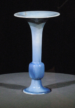 左图为日本武雄市的阳光美术馆展出的这件青百合花瓶,瓷器的拥有者是阳光美术馆和日本著名文物收藏家对中如云。