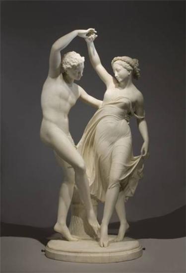 这件珍贵的雕塑艺术品诉说的是古希腊神话中美丽的爱情故事。花神弗洛拉嫁给风神泽甫,她丈夫送给她一座满是奇花异草的花园,并赋予掌管花朵和青春的权利。每当春天来临时,弗洛拉便和丈夫手挽手在花园里漫步,而他们路过的地方就立刻百花齐放。