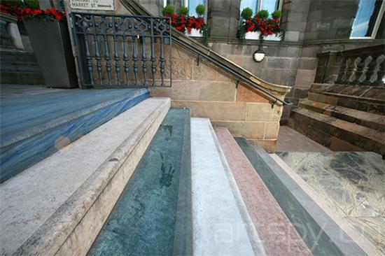 马丁·克里德(Martin Creed)的作品“No 1059”。这件作品以建造于1899年蜿蜒的石头阶梯Scotsman Steps为基础,克里德用104块各不相同的大理石板覆盖在上面。