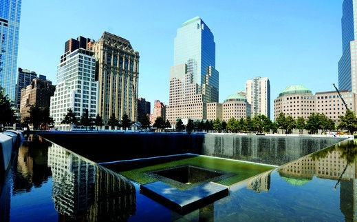 对他们这里是终点,但谁能说这里不是一个新的起点呢?两方水池正坐落在世贸大楼的地基之上,双塔不在,四周绿树蓝天,新的住宅和办公楼正拔地而起,起重机高架,混凝土机轰鸣,人们踌躇满志,行色匆匆。纽约不再是满心伤痛,零点废墟不再是满目疮痍,“9·11”纪念馆方案几经修改与当年的蓝图已经不同,而它的设计师们在经历了这个里程碑式的工程磨砺之后也已经不再是当年的自己。