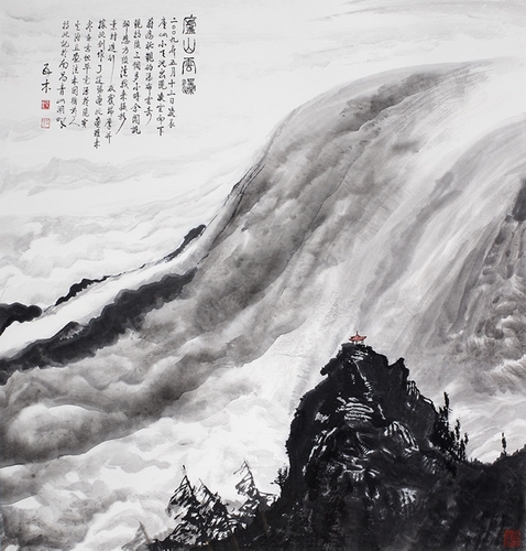 王林森笔下多描绘江西风景名胜,他说这出于一种与生俱来且刻骨铭心的家乡情结,以此寄托乡土情感、憧憬美好未来,从而将赣鄱山水意象演绎得既神采飞扬又情深意长。作为领导干部他曾走遍江西的山山水水,工作走访之余他习惯从艺术的角度观照、体验所见的山水,对江西山川形态和生态保护状况非常自豪,觉得赣鄱大地处处青山秀水、云蒸霞蔚,很值得抒写和赞美,理所当然就成为自己的主要绘画题材。