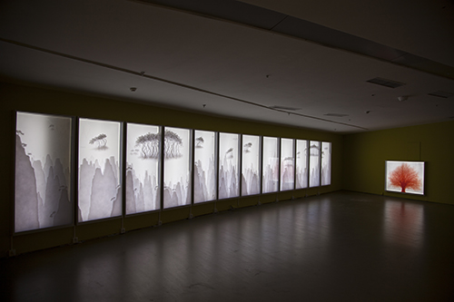 北京今日美术馆2号馆的展厅结构与一般展厅有所不同,所以需要与展览形式相符合的空间布置。 因此布展时引入短片组合形式的电影要素,通过各自的空间在以韩国传奇故事中经常登场的龙的形态构成动线,使得各个作品的意图和形象互不产生冲突并各自以独立的故事呈现出来. 所以这次展览试图使神秘感,律动性,敏感性,新奇性,力动性,趣味性等多样的情感要素在心中交织,能让人感受到韩国固有的乡土气息.