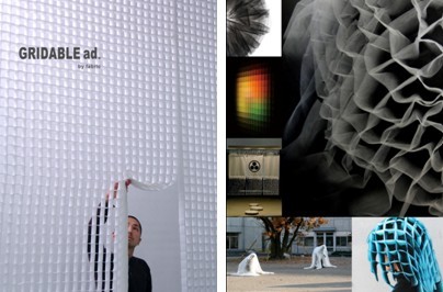 图片说明:这是工业与大学合作的计划──由Onishi of Asakusa与Tama Art University的产品实验室携手创作。我体验到现存生产科技下帘幕的最新变化。从外国进口的平价品打击了日本工业,传统帘幕工业亦不例外,每年在海外进口产品低廉价格竞争下挣扎求存。我收到东京与Taito-ku同意并推广这项计划以助本地工业对抗进口货,我研究帘幕的功能、效果,并设计、发展为一种物料,制成品是建筑用衣服名为「GRIDABLE.ad」,这件衣服有很多超越传统帘幕的新用法。