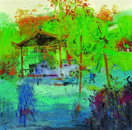 刘佳林 《团湖小景》 50cm×66cm 油画