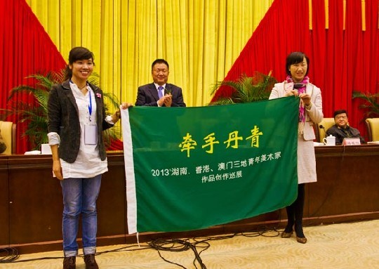 为“牵手丹青”湖南、香港、澳门三地青年美术家作品创作、巡展活动的启动授旗