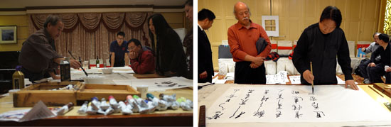 左:艺术家王玉良讲解中国画的用笔