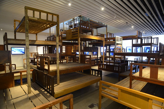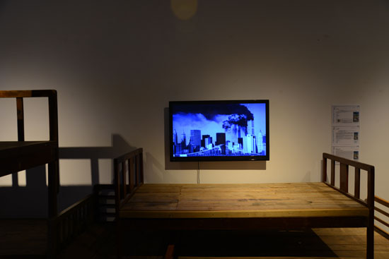 《与灾难共生》2013-14 装置作品 60张收集来的六、七十年代的木床