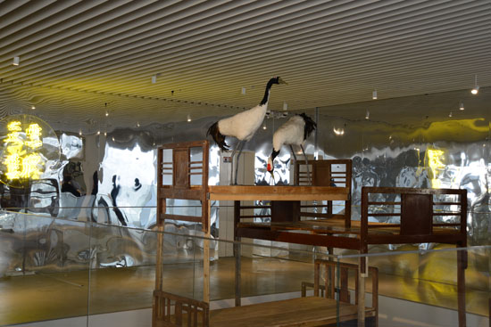 《悲欣交集》2013-14 装置作品 霓虹灯 假仙鹤 塑料镜子