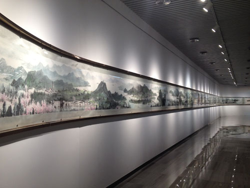 ·被誉为“台湾中生代最富盛名的代表性水墨画家”的江明贤,也是此次“典藏·山水”展中的一大亮点。其耗时一年独立完成的、长达36米的旷世巨作《新富春山居图》,绝对是本次大展中最重量级的作品。参展的其他作品也表达了他对祖国大好河山的咏赞,令人眼前一亮。