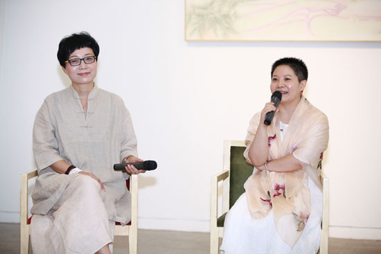 雪小禅:我觉得白苓飞的画特别的安静,而且在她诉说的过程中你就感觉她是一个有宗教信仰的人,我不知道她是不是有宗信仰,但是你感觉只有宗教才能达到这种高度,如果她信奉宗教她是一个宗教徒,如果她不信奉那么我个人感觉一定是她的修行然后把艺术当做了自己的宗教。就像我自己一定是把写作当作了宗教,当作了一种信仰当作了一种修行,可能她也是一样,只有画画的时候觉得自己特别有力量,心也特别安静,可以抵挡世界上的一切风雨,因为她心里怀着对敬忠的爱怀着对孩子的爱,或者怀着对世界的爱,我可能没有她那么浓厚的爱,但是我觉得我心里的那种对文字,或者对文学对艺术的那种敬畏或者信仰,都像白苓飞表达的这些话,其实最后艺术成为我们的宗教,它一定是可以对我们,你觉得它永远不会抛弃你,它是你贴心贴肺的亲人。