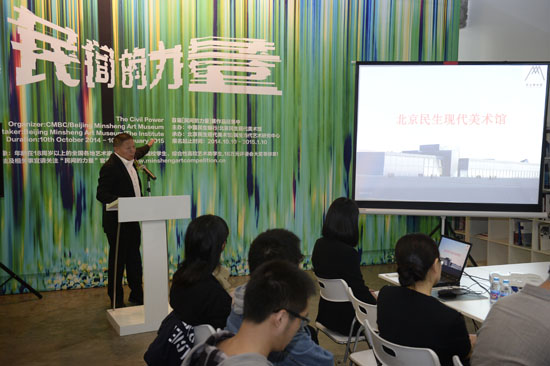“经过多年的实践和摸索,中国民生银行逐步确立了持续投入支持文化艺术事业的特色公益之路。我们在国内率先建立制度化的公益捐赠基金。创立民生艺术机构,长期资助炎黄艺术馆,捐资建立上海民生现代美术馆、上海21世纪民生美术馆和北京民生现代美术馆,我们将以民生美术馆为行动平台,积极推动中国艺术的创新发展,实现民间力量在国家文化战略中的时代贡献。”中国民生银行社会责任管理委员会副主席艾民说。