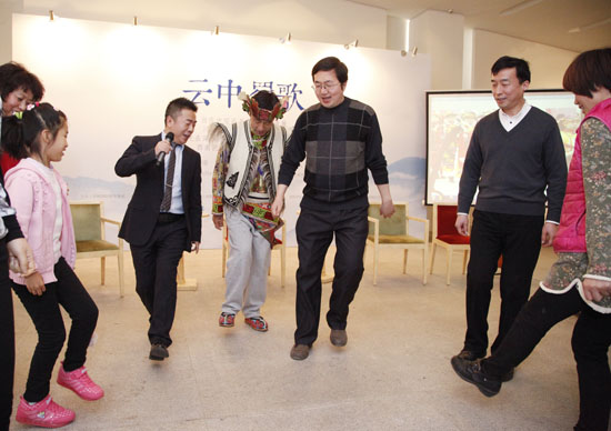 2014年12月13日,“云中蜀歌”音乐总监及节目制作人秦万民,羌族文化传承人余步勇,木给帕乐队景东彝族原生态歌手阿朵、凉山彝族非物质文化遗产传承人非明荣,以及凉山彝族原生态歌手沙玛尔西在北京时代美术馆36层与观众朋友们分享了西南地区羌族、彝族文化习俗和原生态音乐。