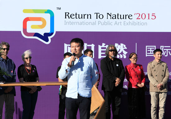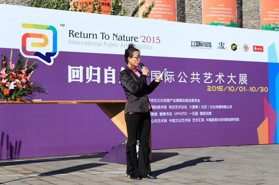 首先感谢六度蜂(北京)文化传播有限公司的友情赞助,感谢上上国际美术馆所提供的大力支持,以及众多的艺术家、各位来宾和我们的主持人。还记得在7月11日,宋庄艺术论坛曾经在上上国际美术馆做了一期“后宋庄时代孵化+艺术家推广计划”论坛,之后我们开始组建团队,于是就有了我们今天的“回归自然——2015国际公共艺术大展”。作为第九届宋庄艺术节中的一个主题展览。此次展览,我们打破了传统的展览模式,将整个展览从艺术生态的角度分成六个单元。希望从不同角度来体现这种具有不同社会属性的公共意识,人跟人之间的交流交往,包括思想哲学、人文观念各方面都能融合在一起,在这个艺术生态的系统梳理工作中,我们将不断的去完善,通过展览活动,打开人与人之间的隔阂,共同建设一个完善的艺术生态。