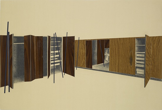 塔提亚娜·图薇 《预制空间》局部,铸锈金属,木头,划痕 2014