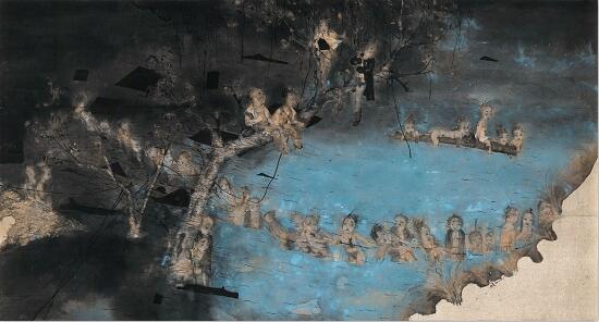 刘庆和 风•水 纸本水墨 270×500cm 2010