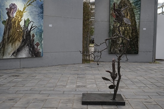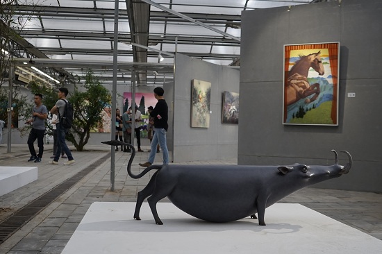 策展人代表杜曦云先生在开幕式上致词中讲到:“在黑桥艺术区被强迫拆迁的时候,鲜花港这样的艺术区,为艺术家提供了自由的创作的环境,这也是当代艺术创作的基础。”