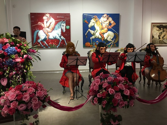 7月2日下午15:00,伴随着“二十多个猴子”行为艺术的开始,“爱情是什么”系列艺术活动随即开始,本次活动依托“爱情是什么”艺术展览的环境,同时演奏庄严华丽的贝多芬《第九合唱交响曲》 《can you feel the love night》等爱情主题的世界名曲,更有百老汇音乐剧中的精彩选段与知名歌手的现场演唱,为参观画展的观众带来了不一样的视觉体验。