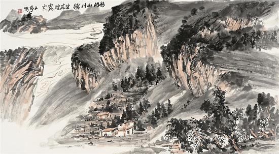 郝文静 《移得山川胜》 纸本水墨 41×75cm 2015