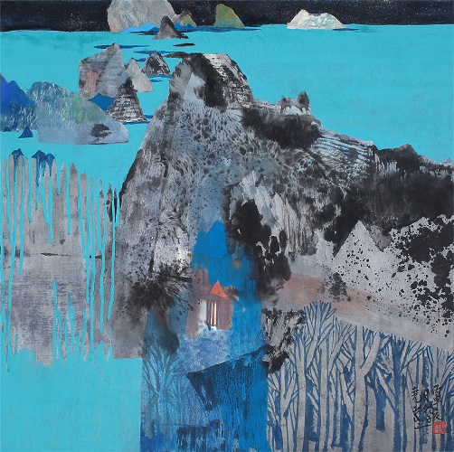 沈波《碧画》纸本水墨、综合材料 65×65cm 2016