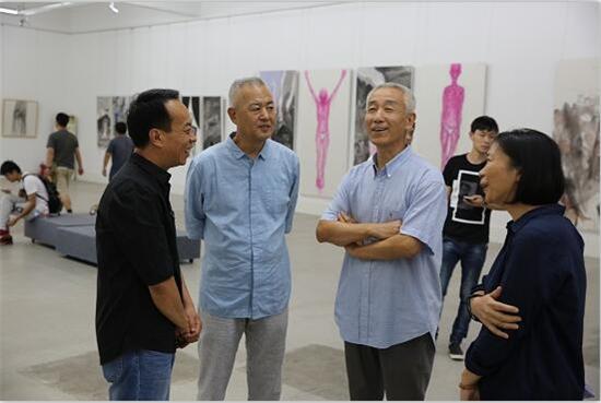 导师、艺术家刘进安(左2)及万荷艺术创始人张晋先生(左1)与首师大美院赵永康、藤英教授畅谈现代水墨