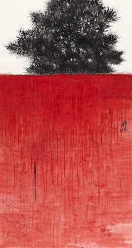 陈陈 红墙 纸本水墨 178×97cm 2016