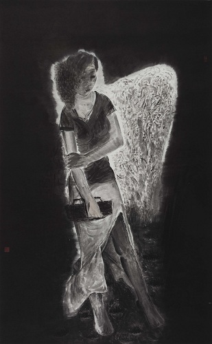 茹辉 慰藉系列(四) 纸本水墨 180×97cm 2016