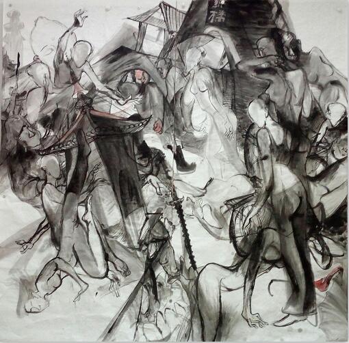 王亚微 痛觉残留 纸本水墨 97×180cm 2016