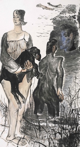 马岩 若有来生组画 断桥 纸本水墨 247×124cm×2 2016