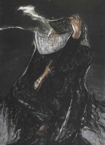 肖保华 虑之一 纸本水墨 138×68cm 2016