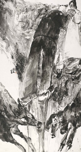 庞璐 夜半逾城(二)纸本水墨 246×124cm 2016