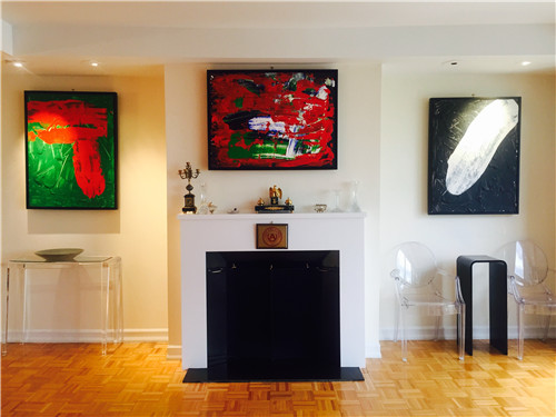 此次颁奖仪式与展览在位于曼哈顿第五大道Trump Tower的纽约太阳画廊 (Sun Gallery New York)举行,展出了许妮娜最新创作的BU系列七幅油画作品。 “BU”与“不”谐音, “不”意味着否定与颠覆。学会对自己的习惯说“不”,学会对常规思维说“不”,学会对所谓传统原则说“不”, 才会变得与众不同。许妮娜说:“这是一个逐步正视自己内心并且重塑自我的过程, 如同剥洋葱一般,一层层地剥去世俗的包装,最终真诚地与自己的内心对话。否定自己是为了更好的相信,从而获得重生,就像凤凰涅槃那样,卸下了重重的包袱,穿越了厚厚的心墙,这需要一种勇气, 更需要一种善于自我认识的智慧,而颜料与画笔成为了我脱胎换骨最好的工具。” “BU”又与“布”谐音,选择最直接、最纯粹的色彩(红色、绿色、蓝色、黑色与白色),让颜料与颜料在木板上摩擦并直接融合,一笔笔泼洒,一笔笔覆盖,再泼洒,再覆盖,就像在编织美丽的布匹,没有过多繁复的图案,跃动的色彩配合简单的点、线、面编织出艺术家自我蜕变的心理历程。没有那么多清规戒律,没有那么多传统原则,一切都遵循自己的内心。作为表意主义艺术家,许妮娜的作品旨在达到三种意境的交互融合,即“本意”,“我意”,“他意”。“本意”是艺术家创作的原动力,“我意”是艺术家想表达的意念,“他意”是观者对作品的理解。当这三者产生共鸣的时候,表意主义便得到了圆满。许妮娜正是通过意境表达了内心世界的本质,激发了无限的力量,以色彩激情传达着她对于这个世界的渴望与展现。