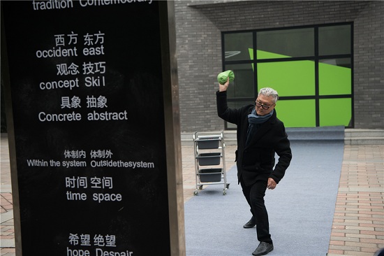 行为现场中央美术学院美术馆馆长王璜生在砸门