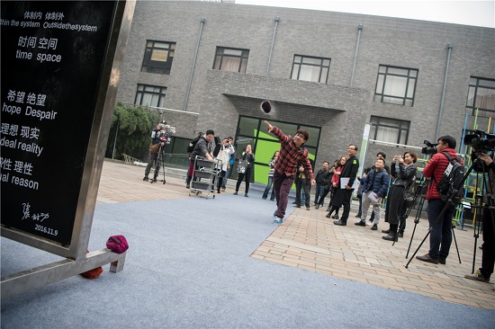 2016年11月9日,中央美术学院美术馆迎来了第三届CAFAM双年展,此次展览以“空间协商:没想到你是这样的”的来命名试图在提供一种全新的展览誓言模式。所谓“空间”,既指世纪的物理空间和建筑空间,也只向社会空间、心理空间、文化空间、公共空间等。在此次参展的诸多作品中,张树功的互动行为艺术无疑是一大亮点,“破门而入”破的不仅仅是作为物体的门,更是破了以门为意象的所谓规矩、标准和分类。展览当天“空间生长”——第三届CAFAM双年展的“非标准亮相”在中央美术学院美术馆举行,“门——张树功的行动”14站及影像和美术馆外场地上的“门.问”显得格外引人注目,当代艺术家张树功的“行为艺术”在喧嚣中的VR和AR的浪潮中平静地迎来了参观者。